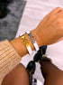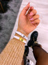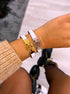 Pulseira rígida - escrava, com esmalte branco, com pormenor de "H" ao centro no encaixe da pulseira.