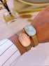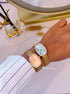 Relógio analógico super elegante com bracelete fina e mostrador oval.