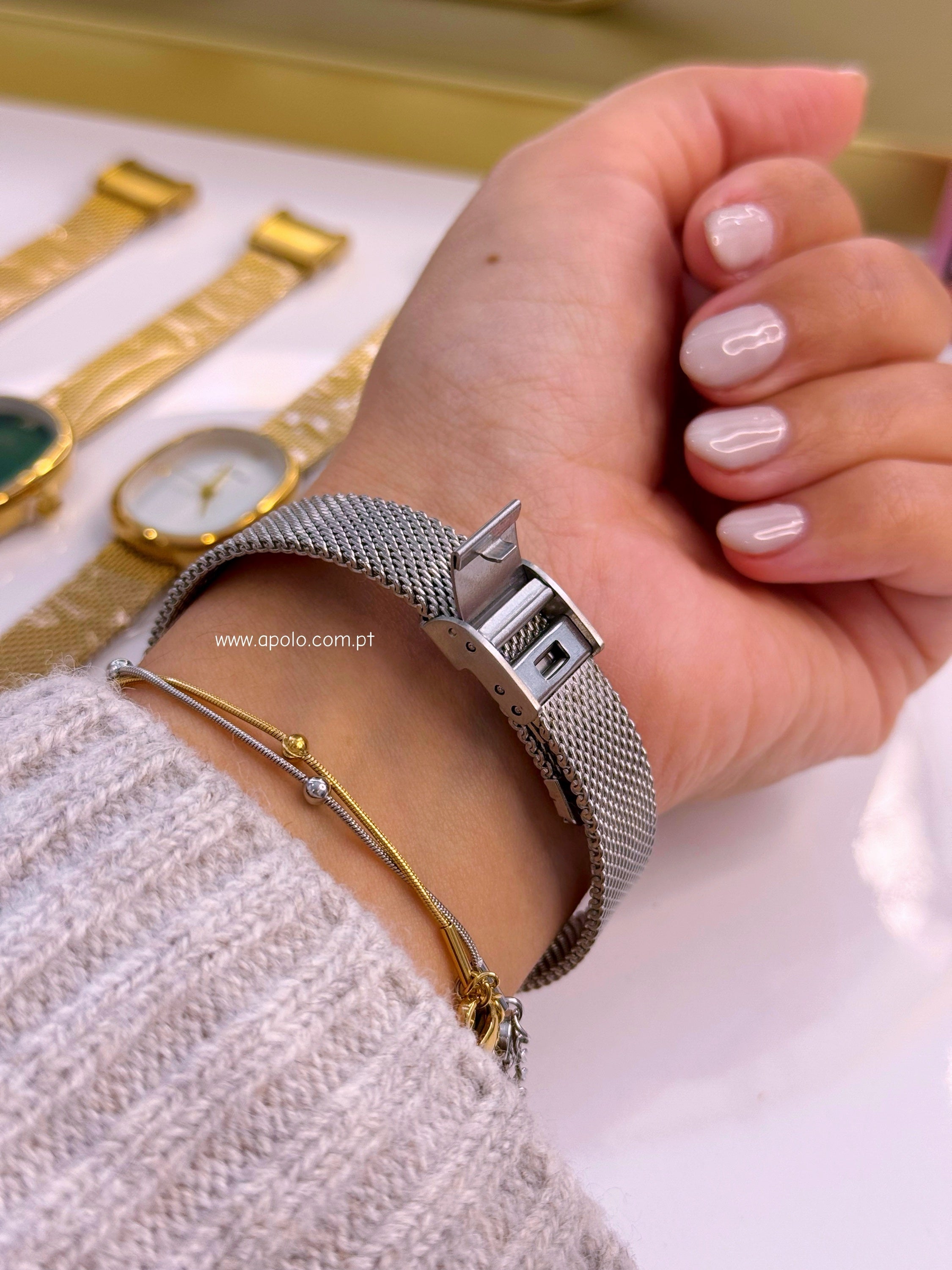 Completamente ajustável ao pulso sem precisarem de alterar/mexer em qualquer peça. Vê nas imagens a abertura dele e como a bracelete entra por dentro, apertando apenas na medida que tu pretenderes no teu pulso.
