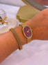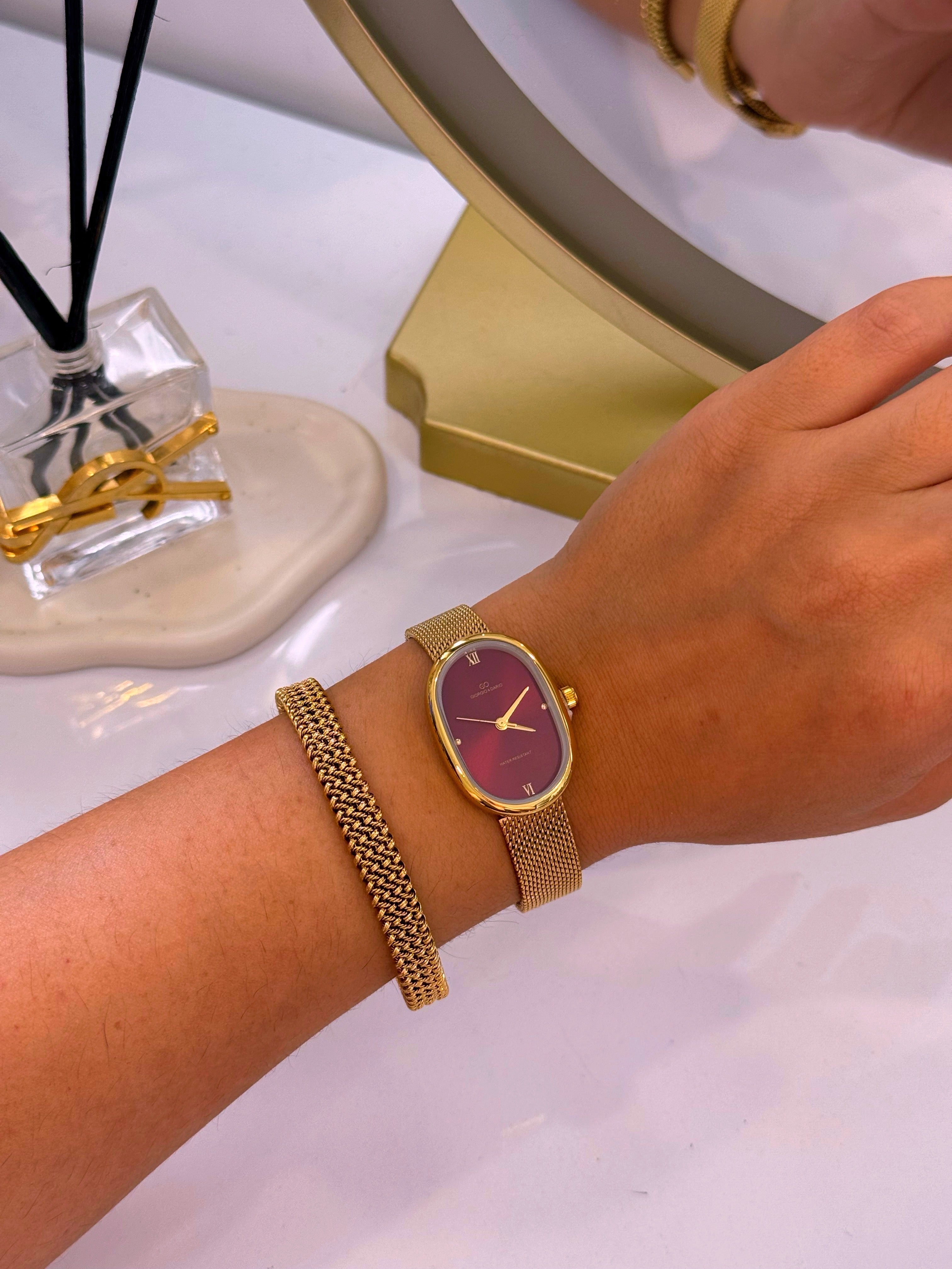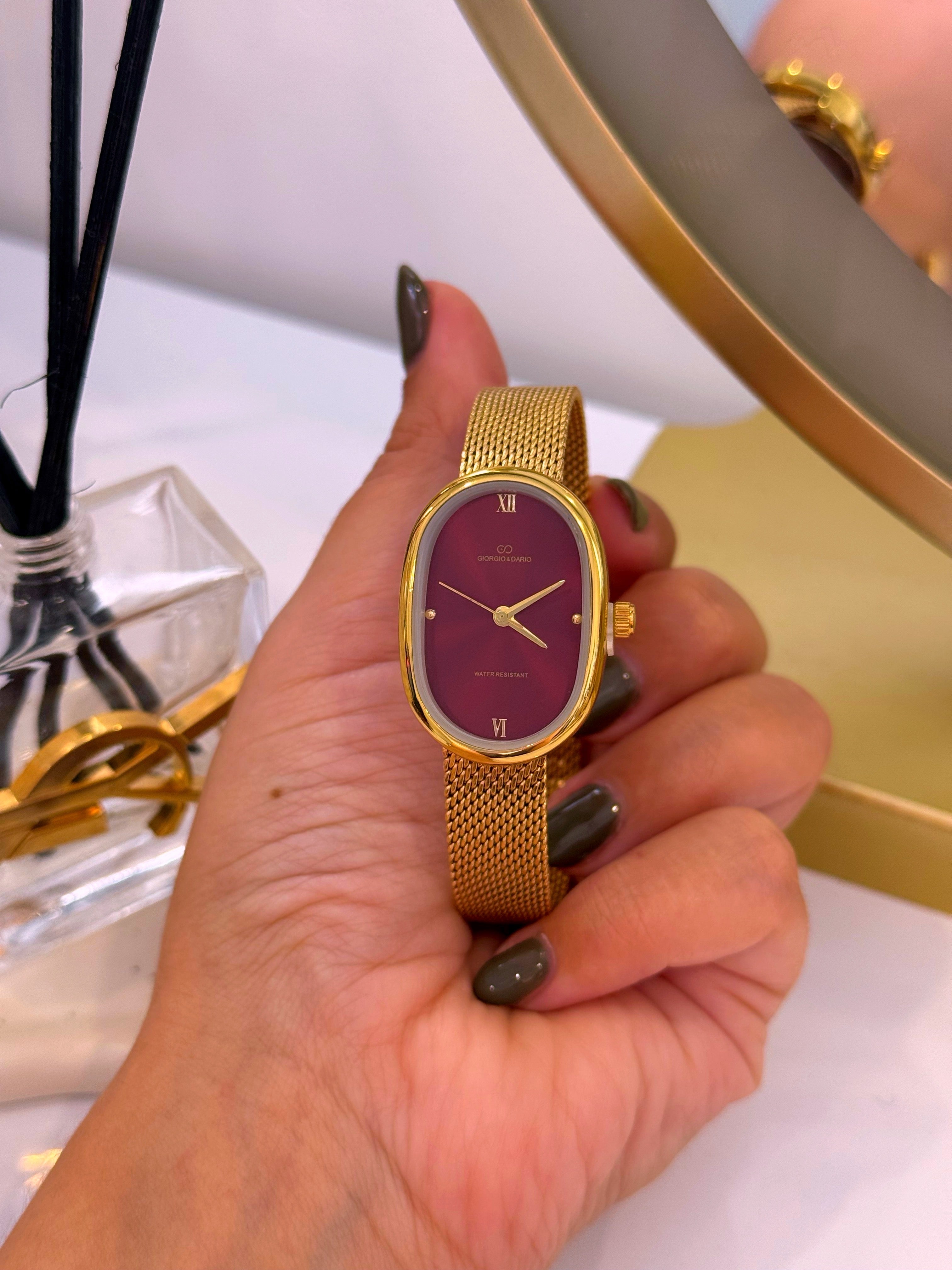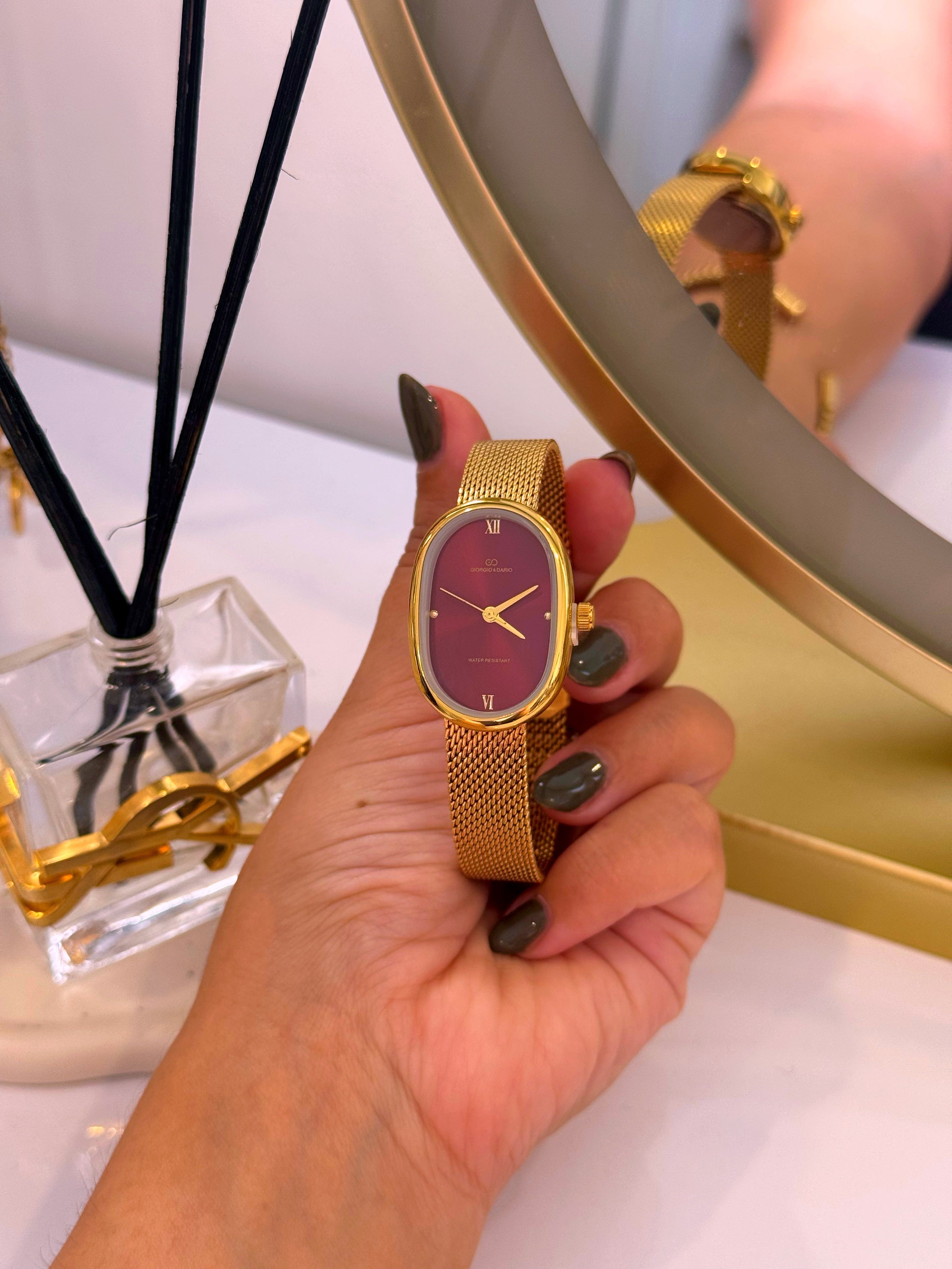 Relógio analógico super elegante com bracelete fina e mostrador oval.