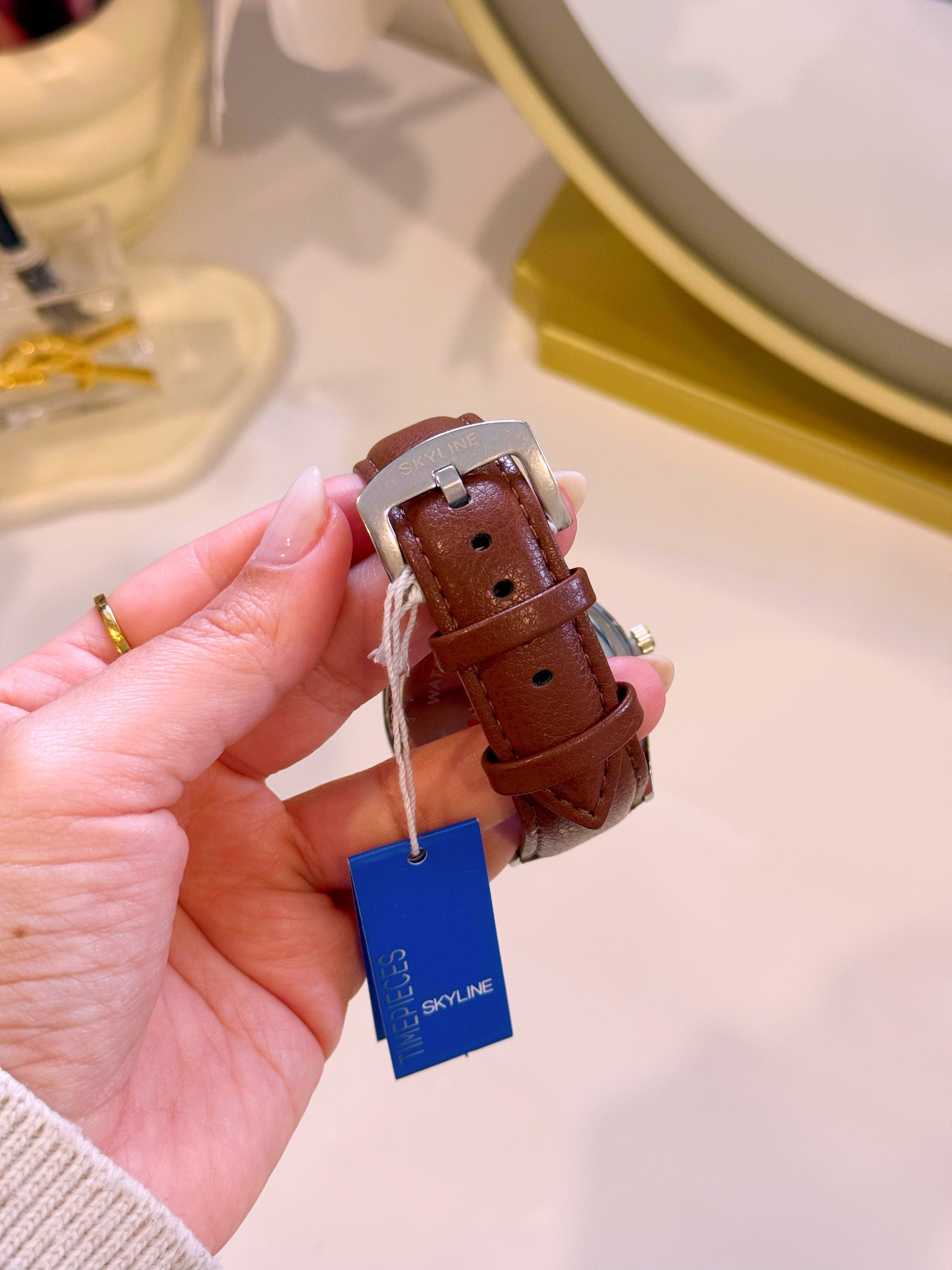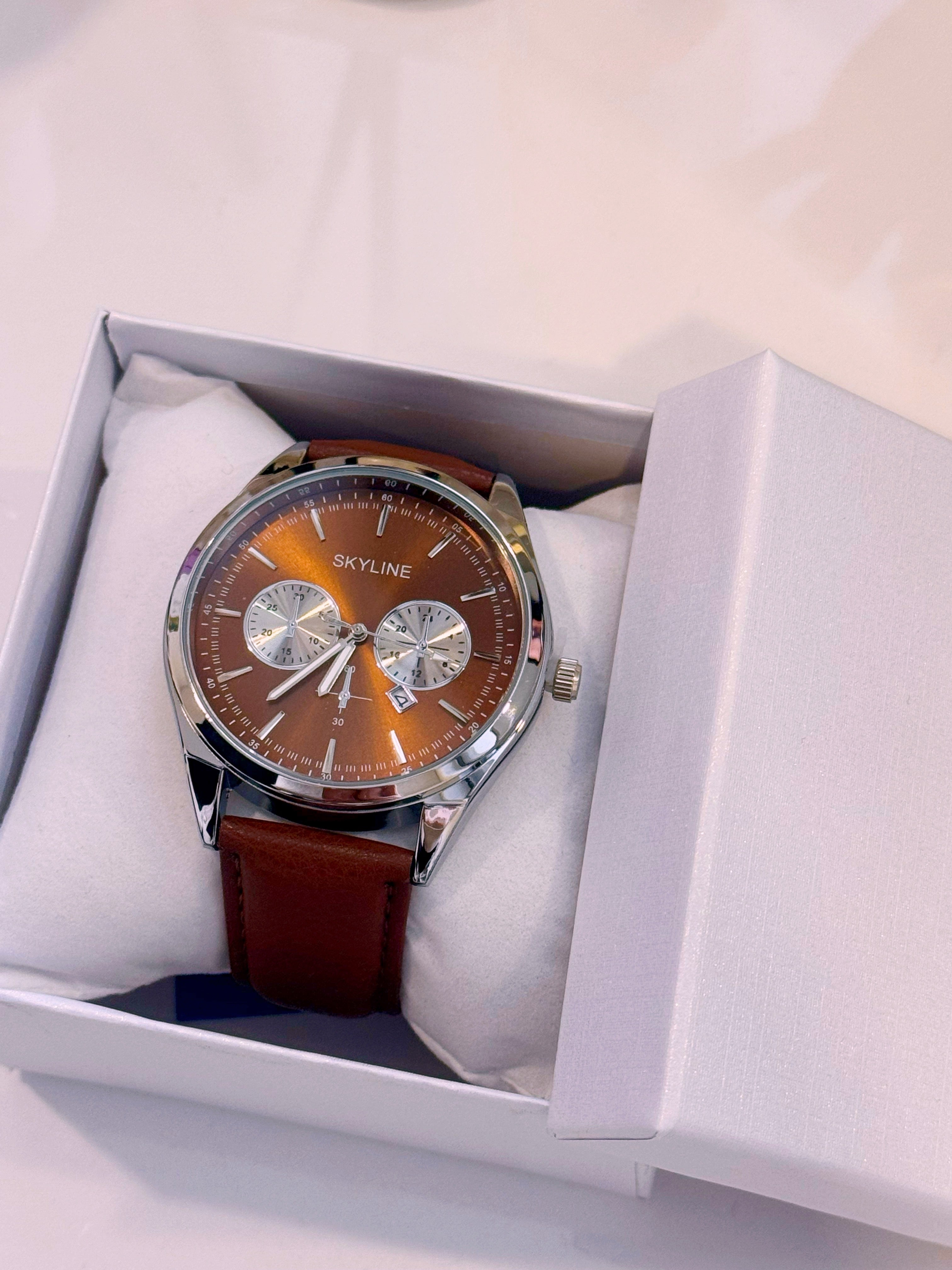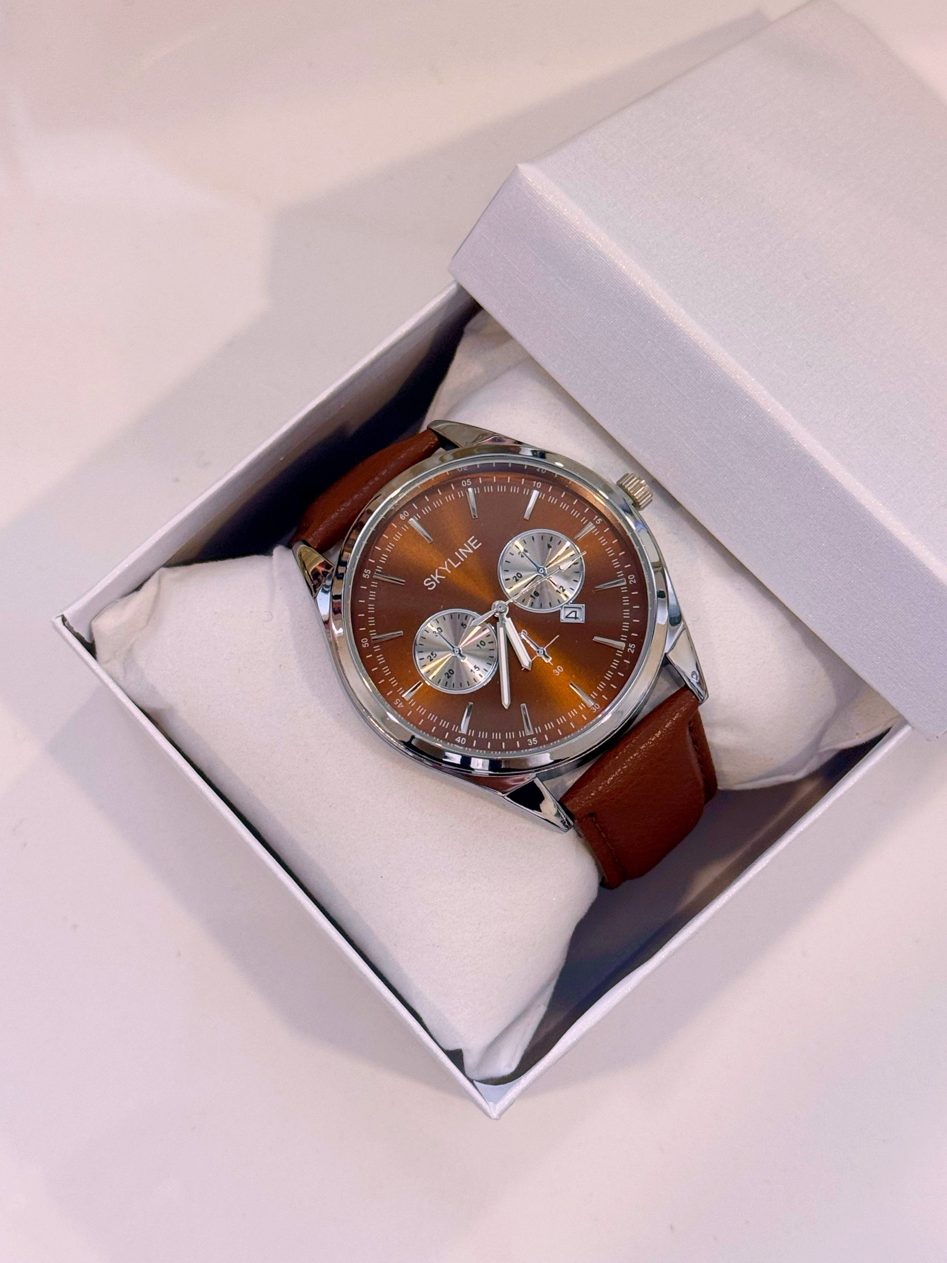 Relógio Skyline em pele, analógico e com mostrador interior para o dia.