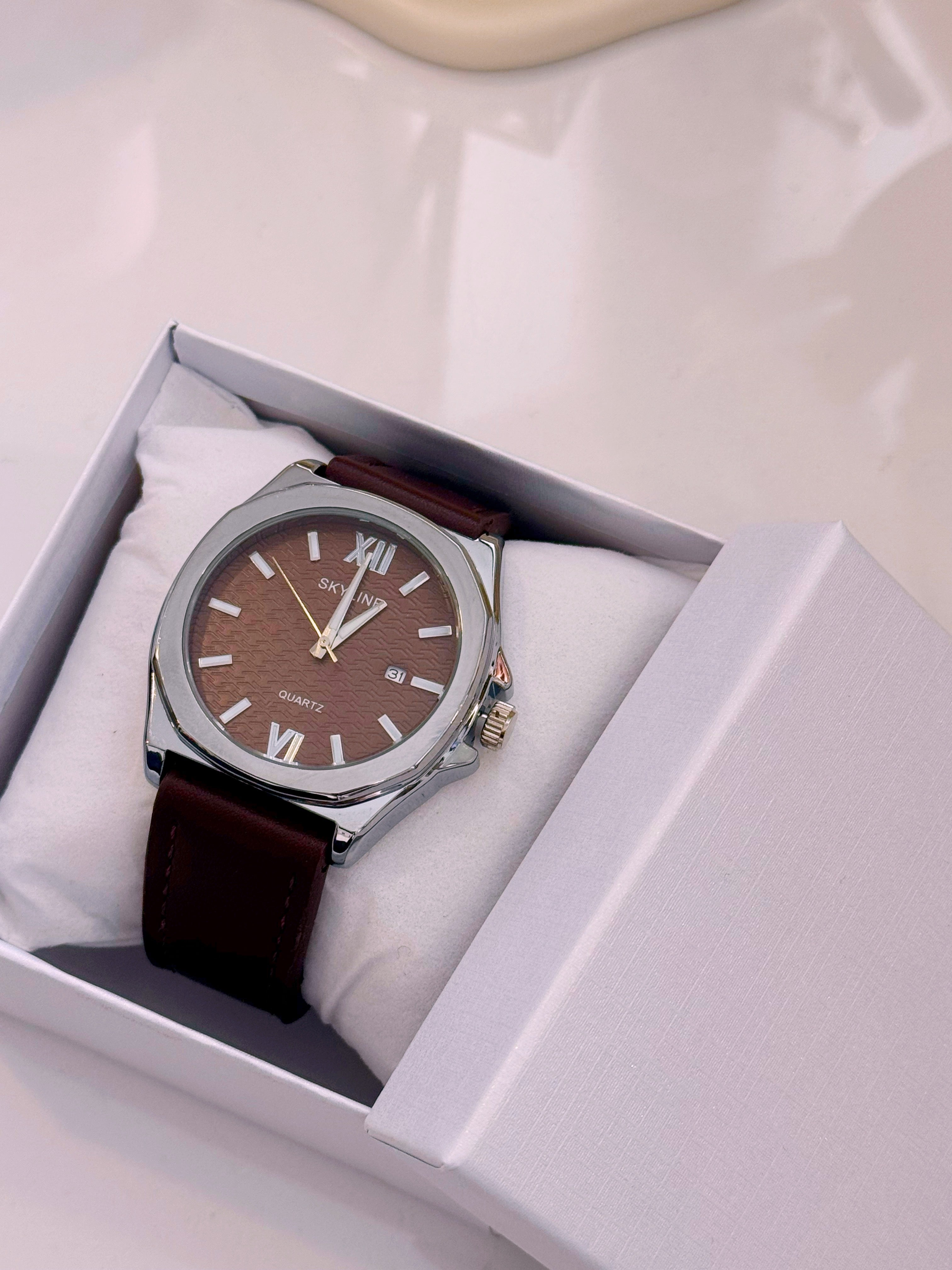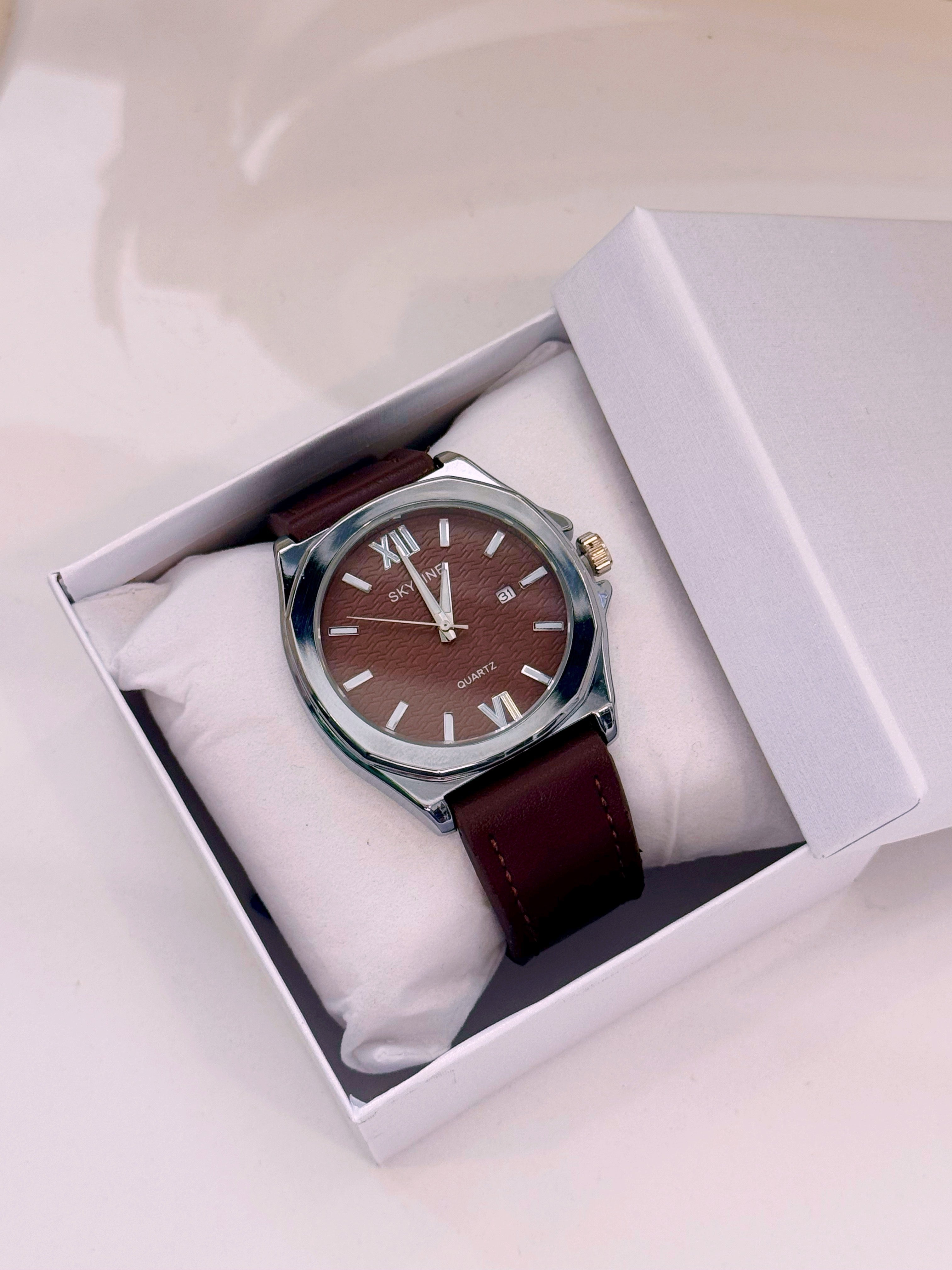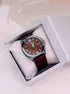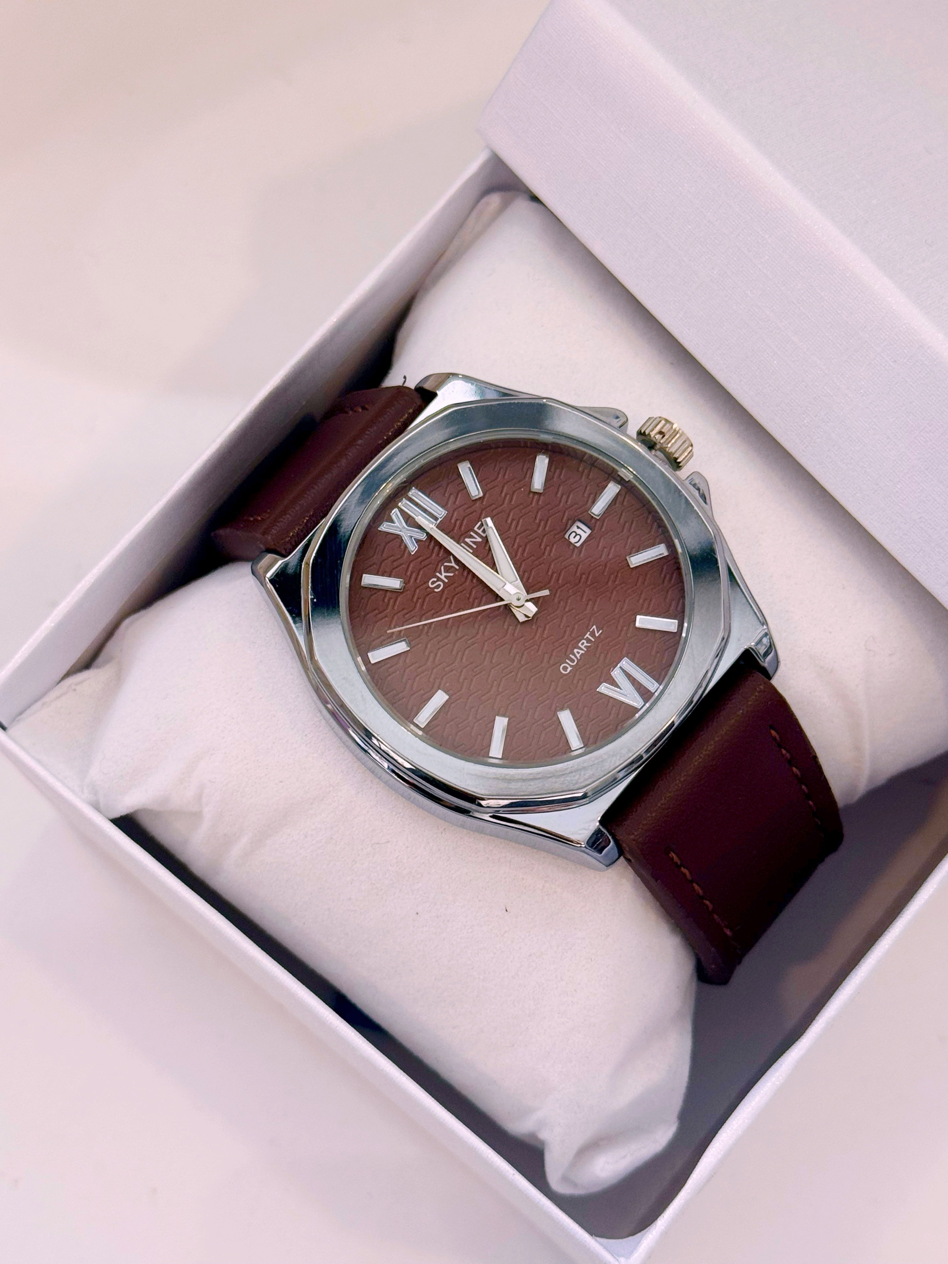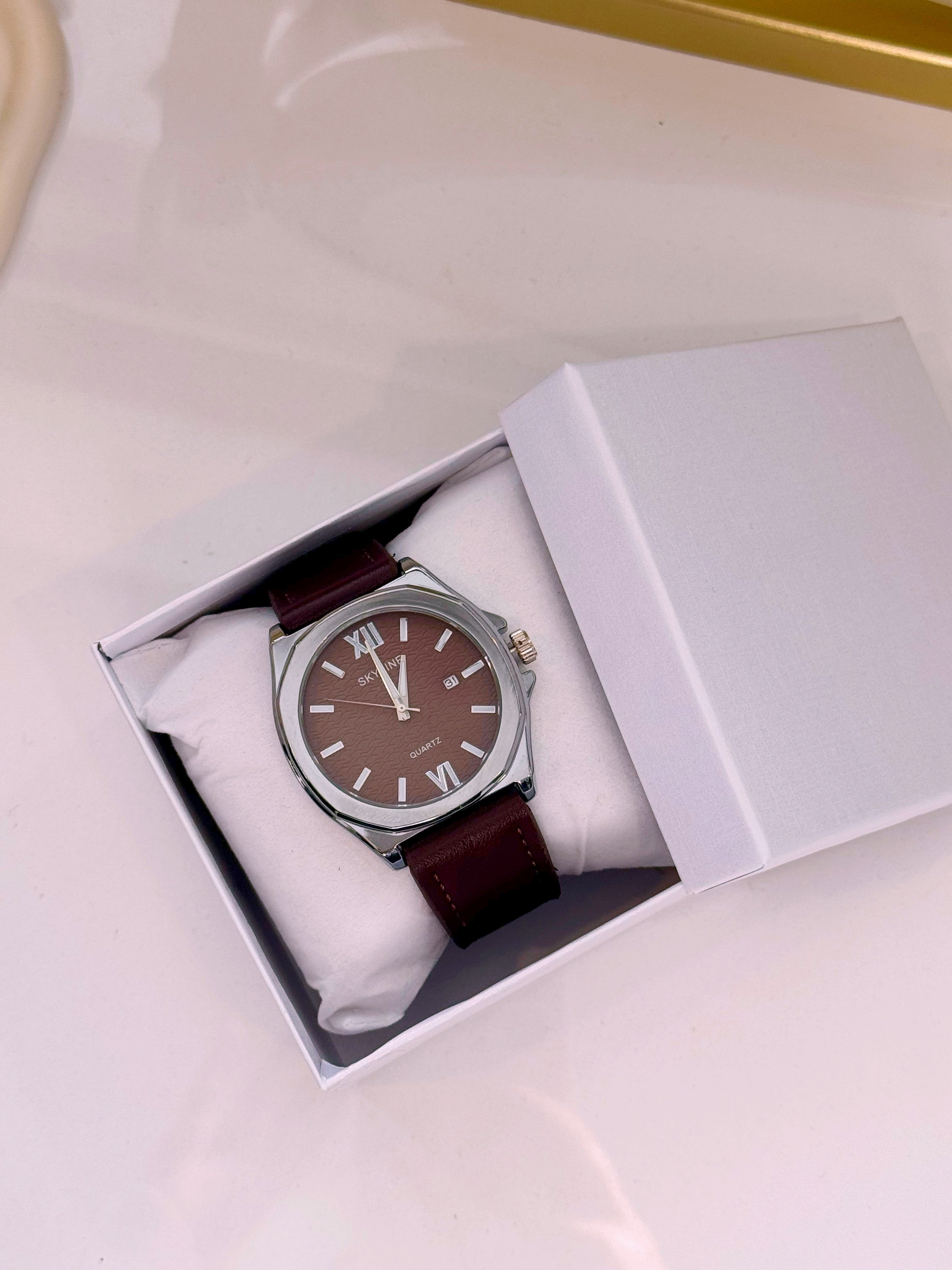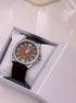 Relógio Analógico em pele | Castanho escuro com mostrador prateado