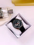 Ajustável, mostrador mede aproximadamente 4,6 cm e bracelete com 2 cm.