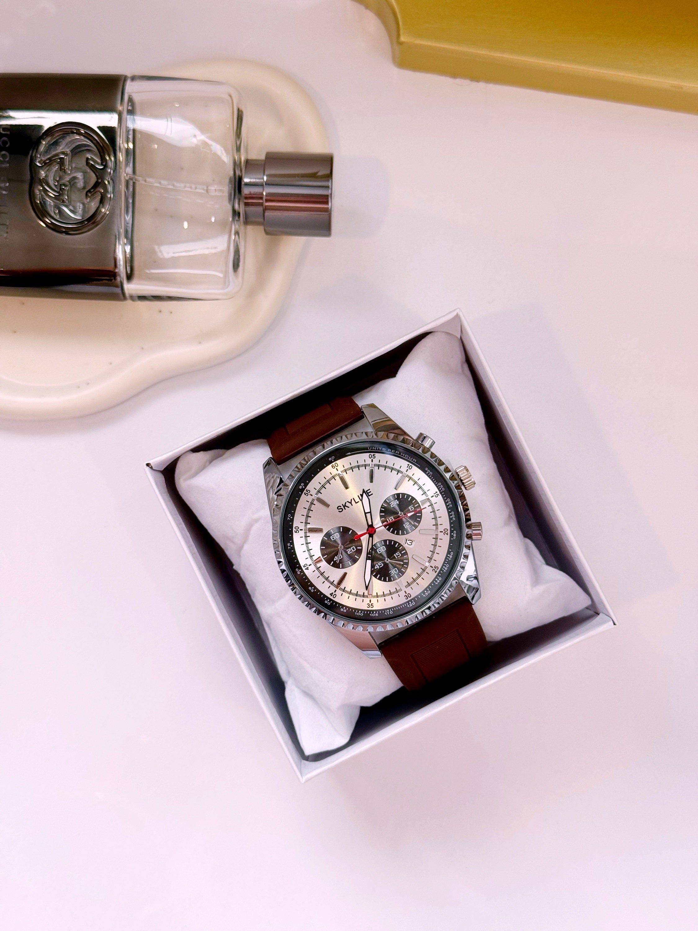 Relógio Skyline, analógico e com mostrador interior para o dia.