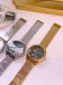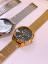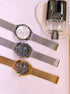 Ajustável, mostrador mede aproximadamente 4,5 cm e bracelete com 2,1 cm.