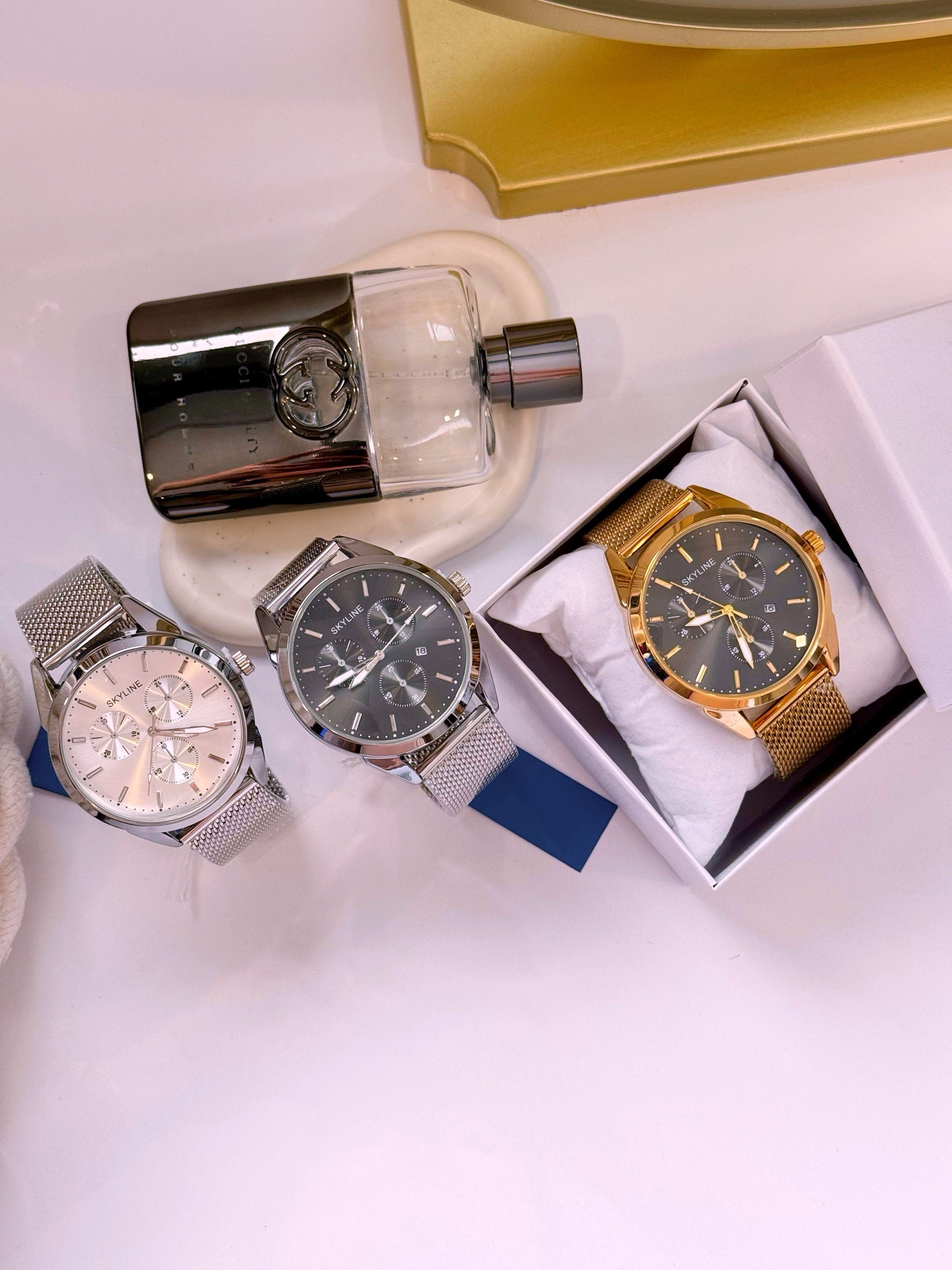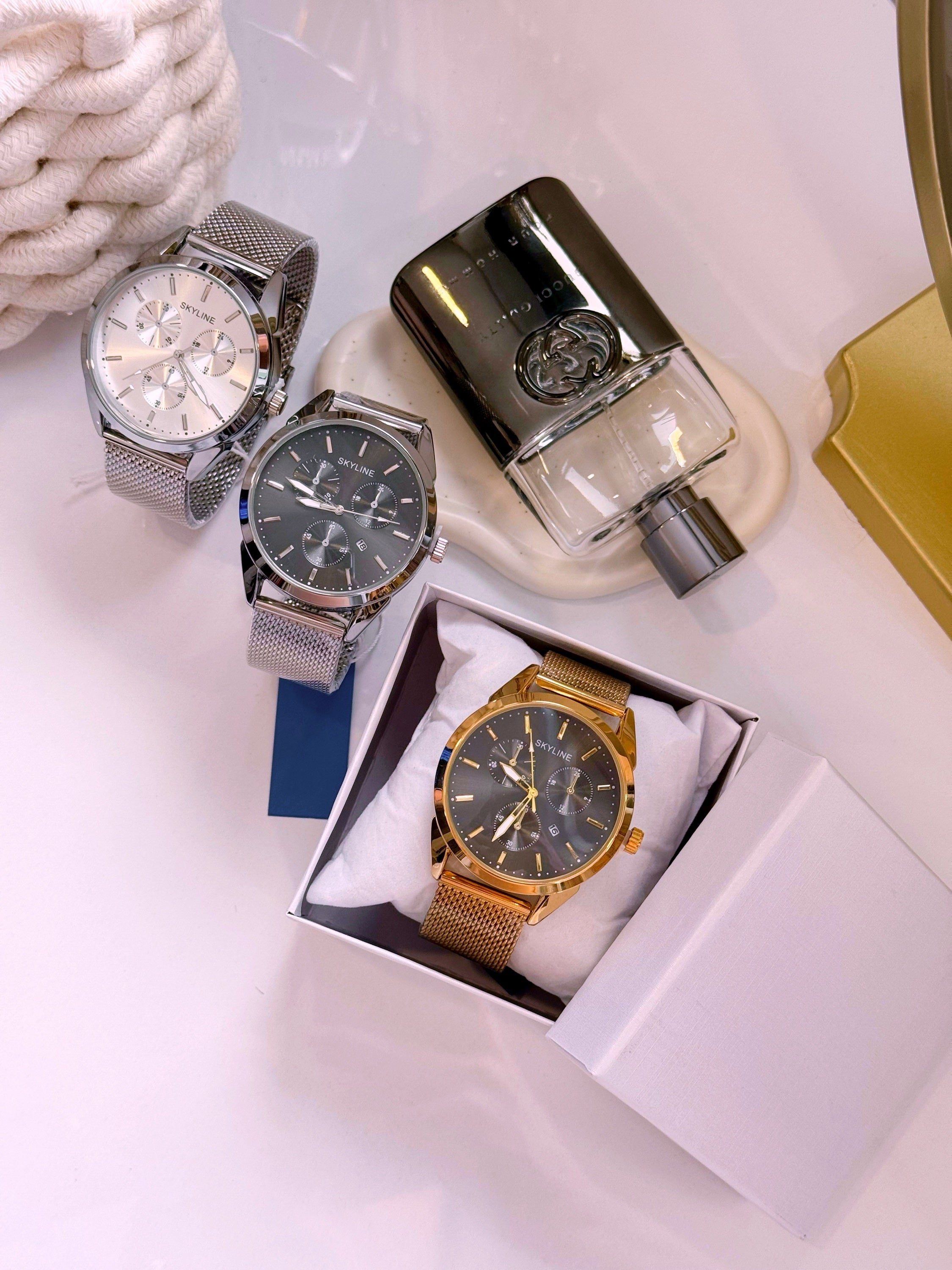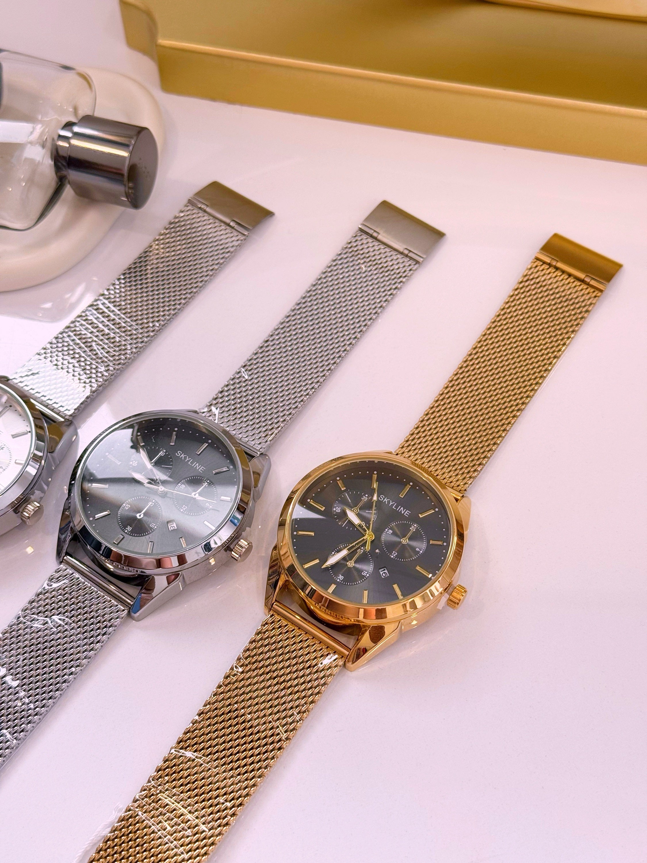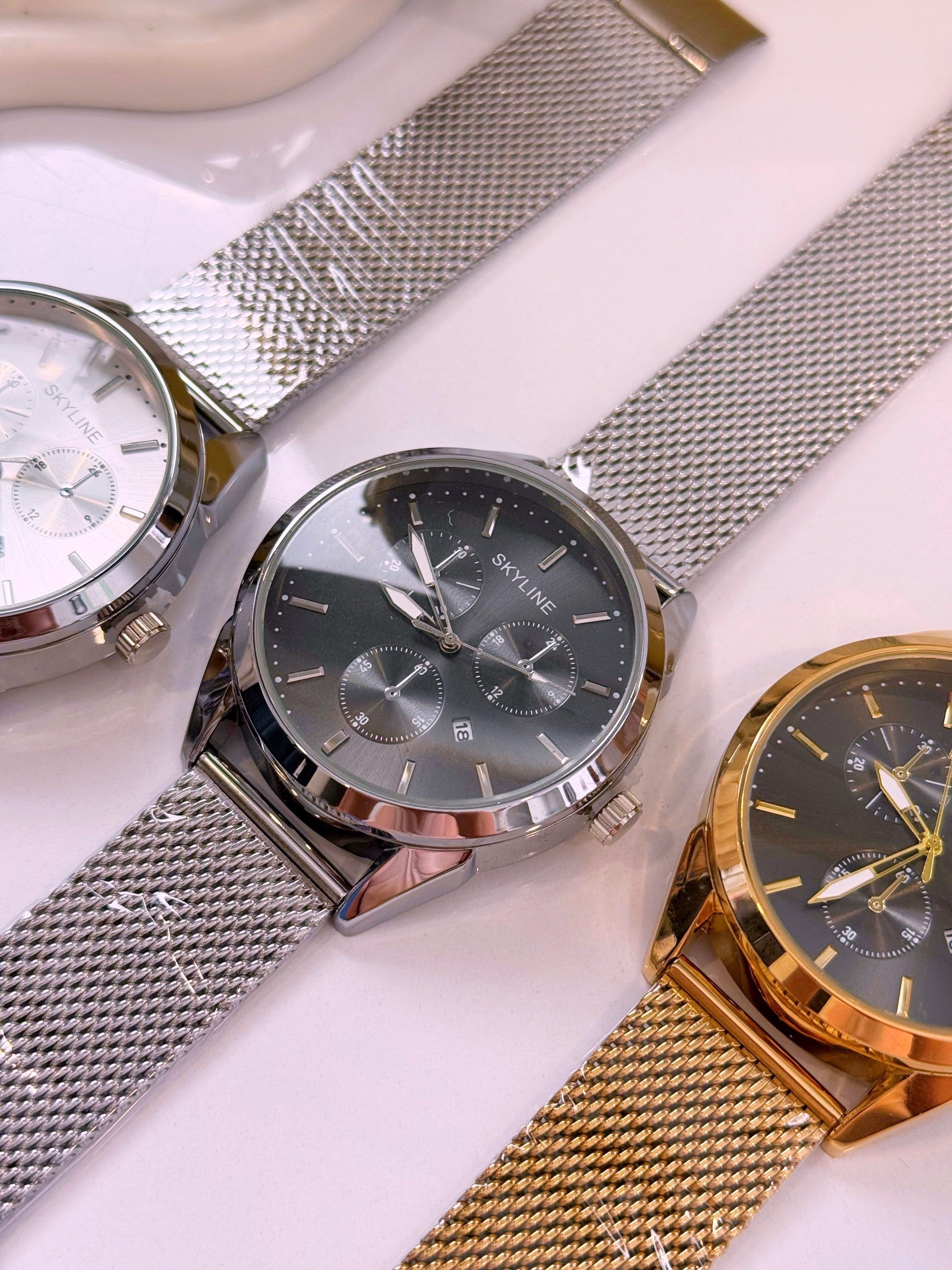 Relógio Skyline, analógico robusto com mostrador interior para o dia.
