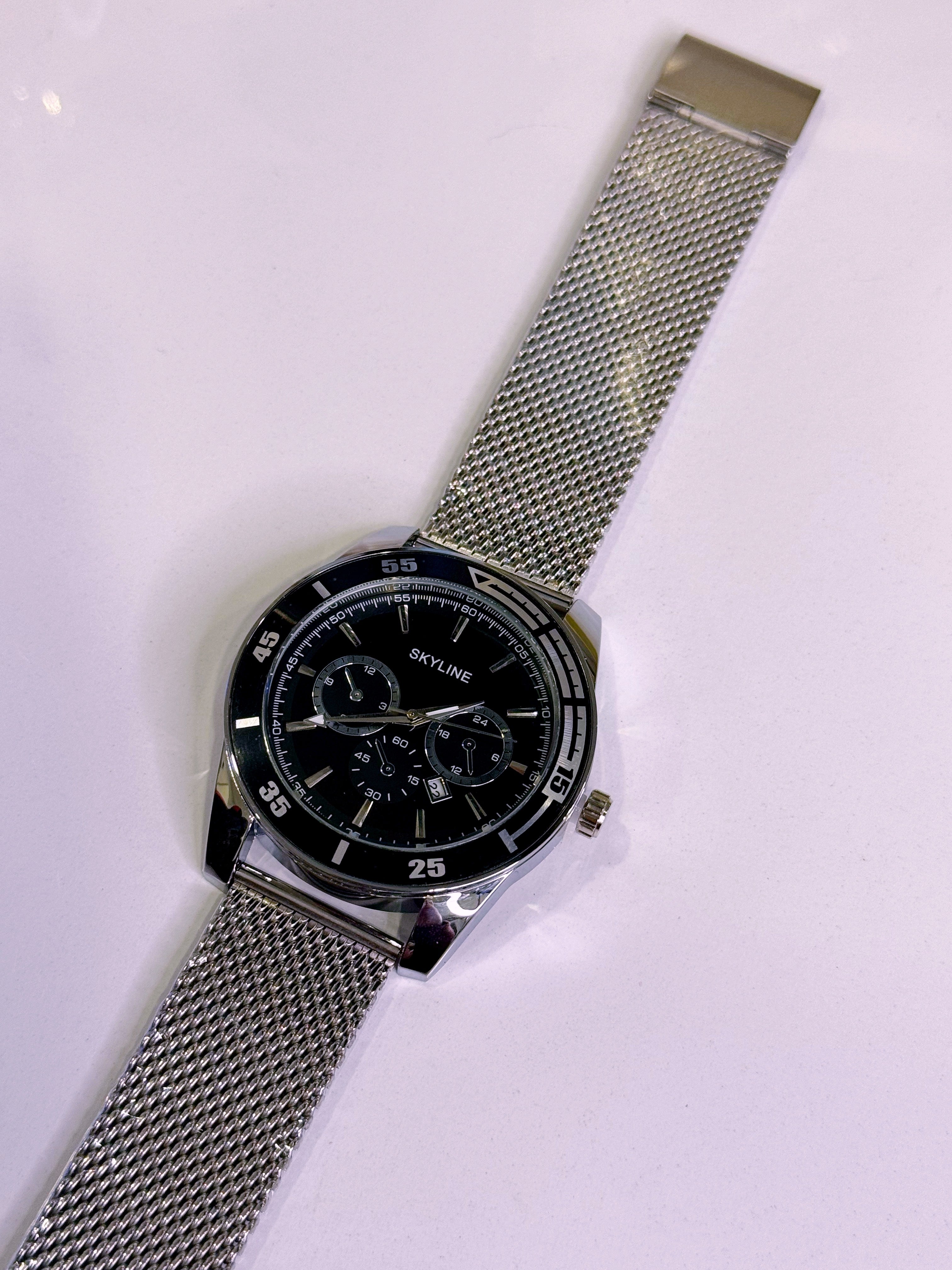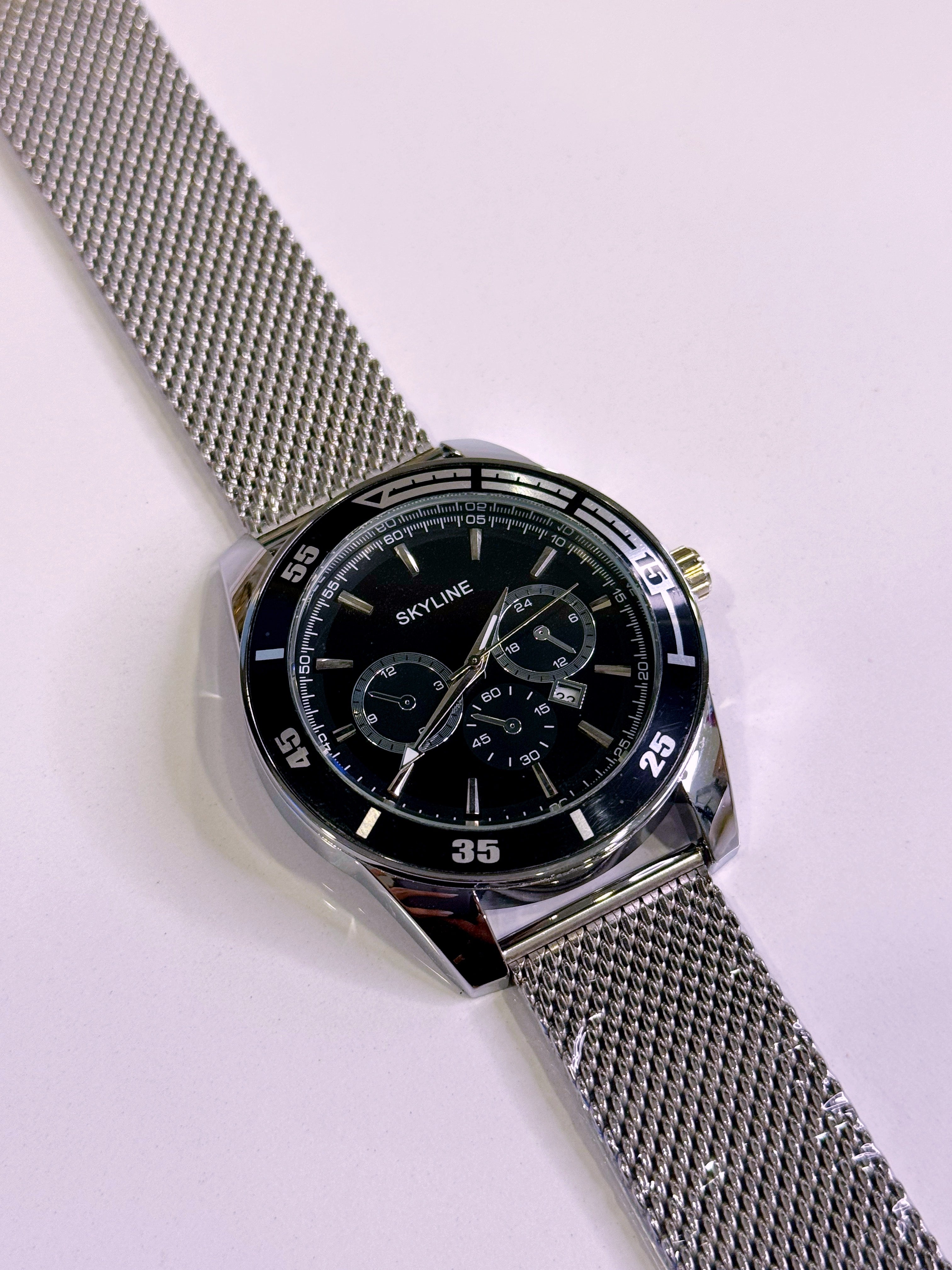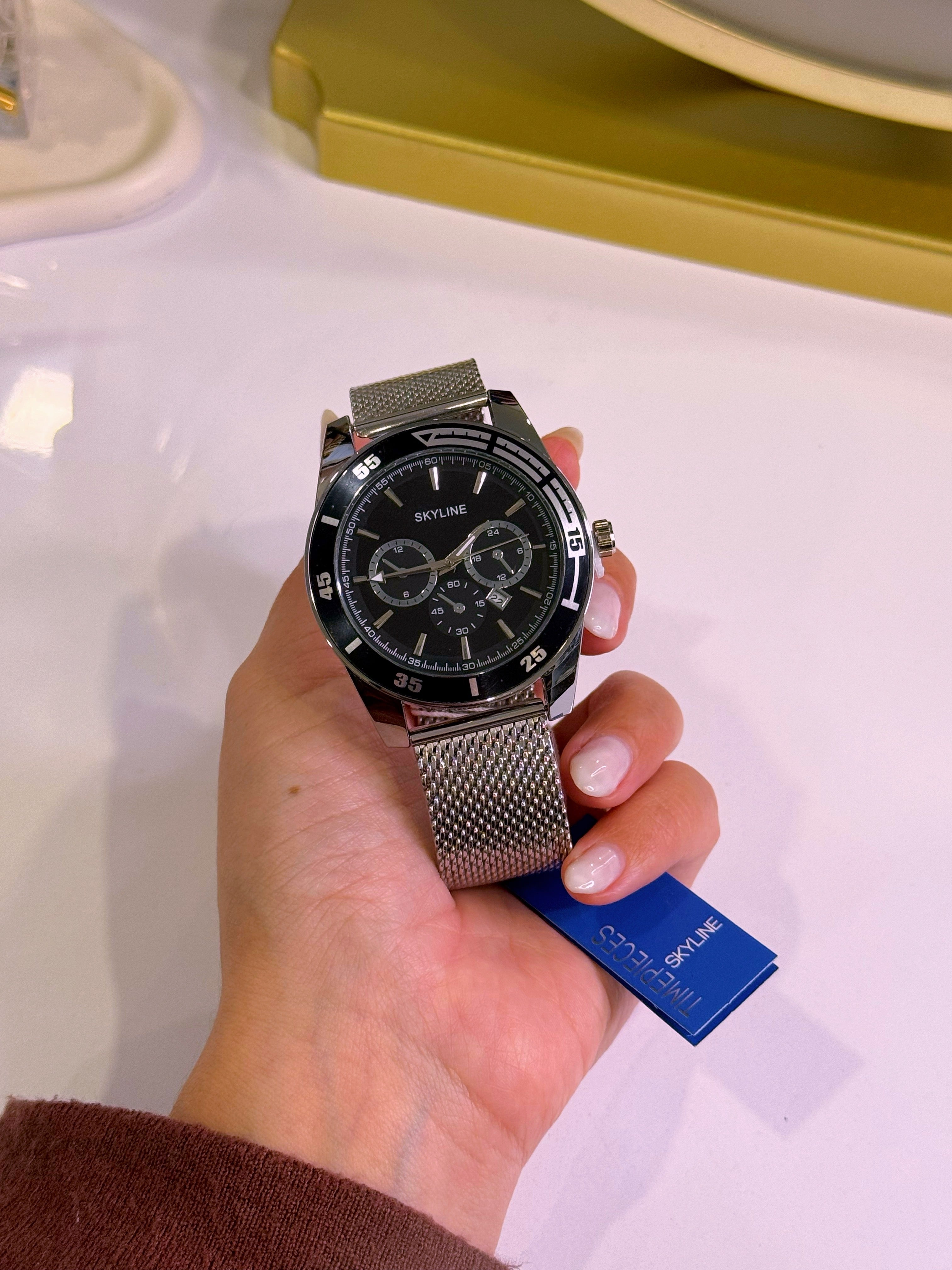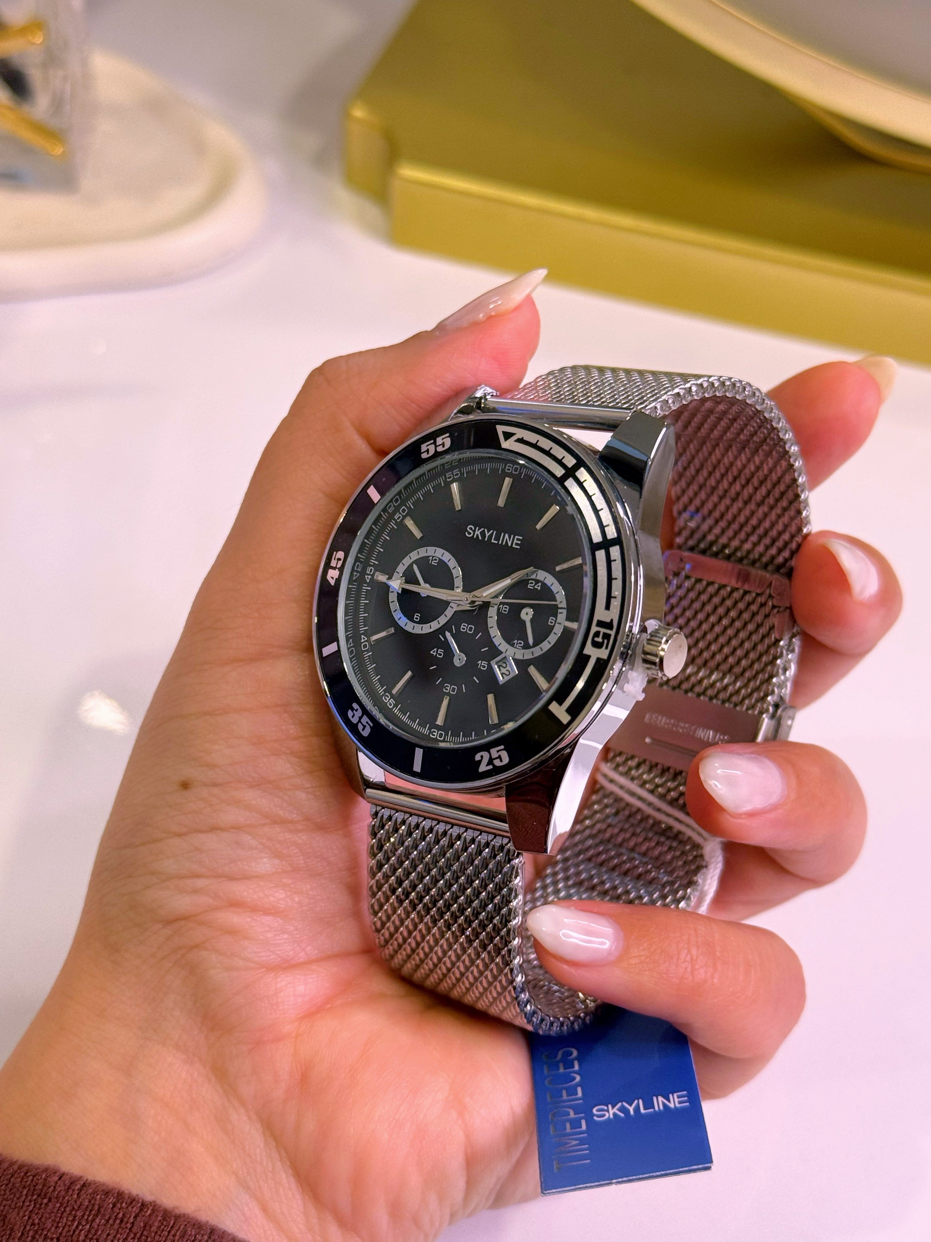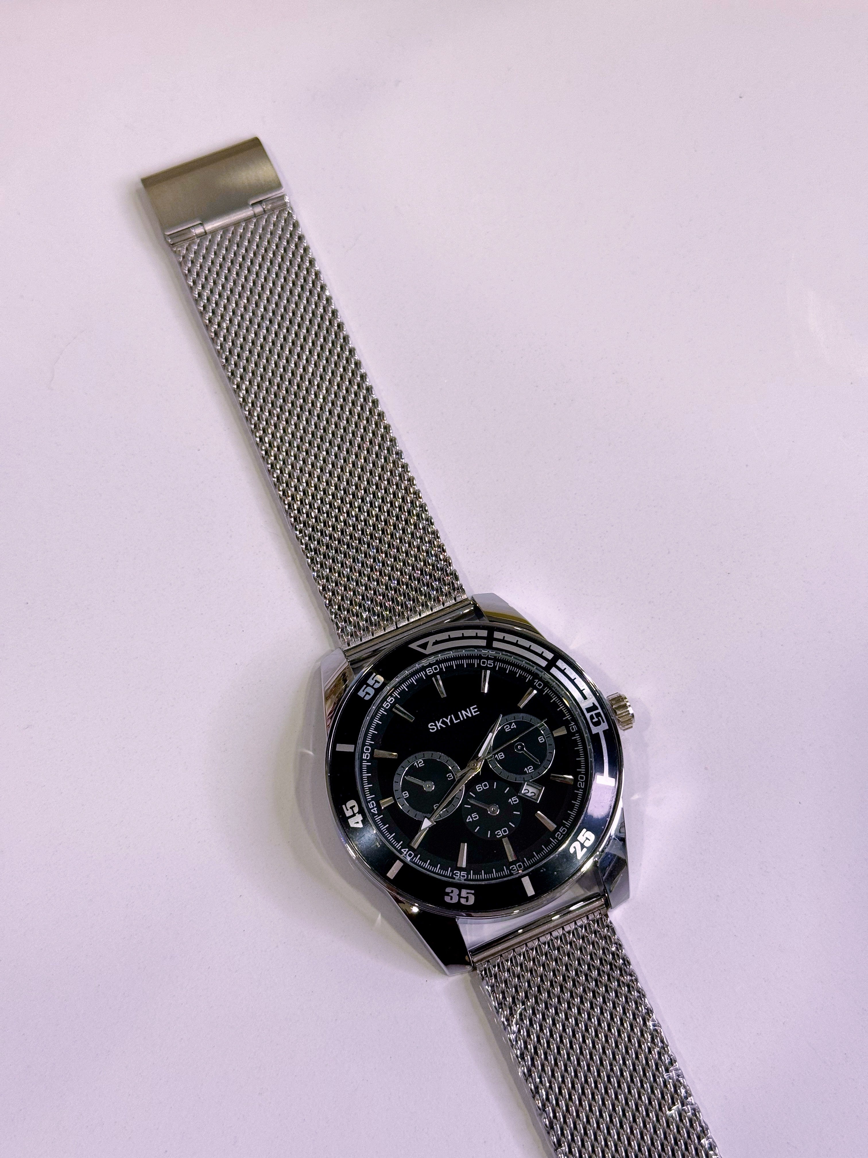 Relógio Analógico Skyline | Prateado com mostrador Preto