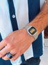 Ajustável ao pulso, através de peça amovível na bracelete.