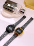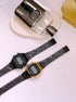 Ajustável ao pulso, através de peça amovível na bracelete. Mostrador com 3,4 x 3,9 cm e bracelete com 1,5 cm.