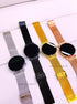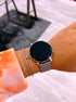 Relógio digital com bracelete de efeito milanesa.