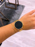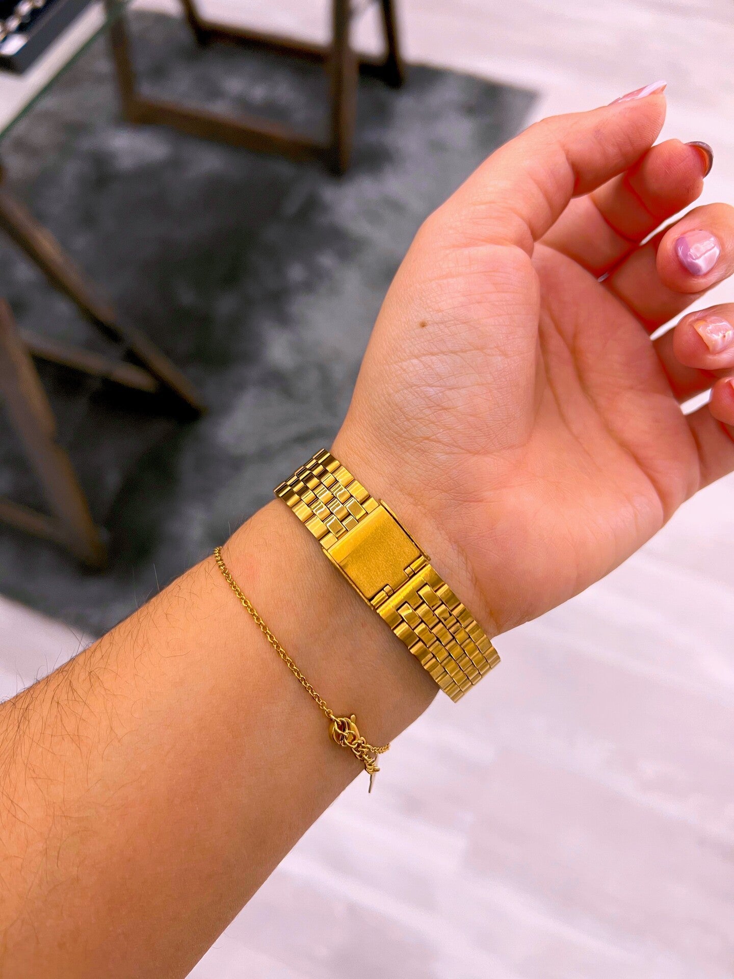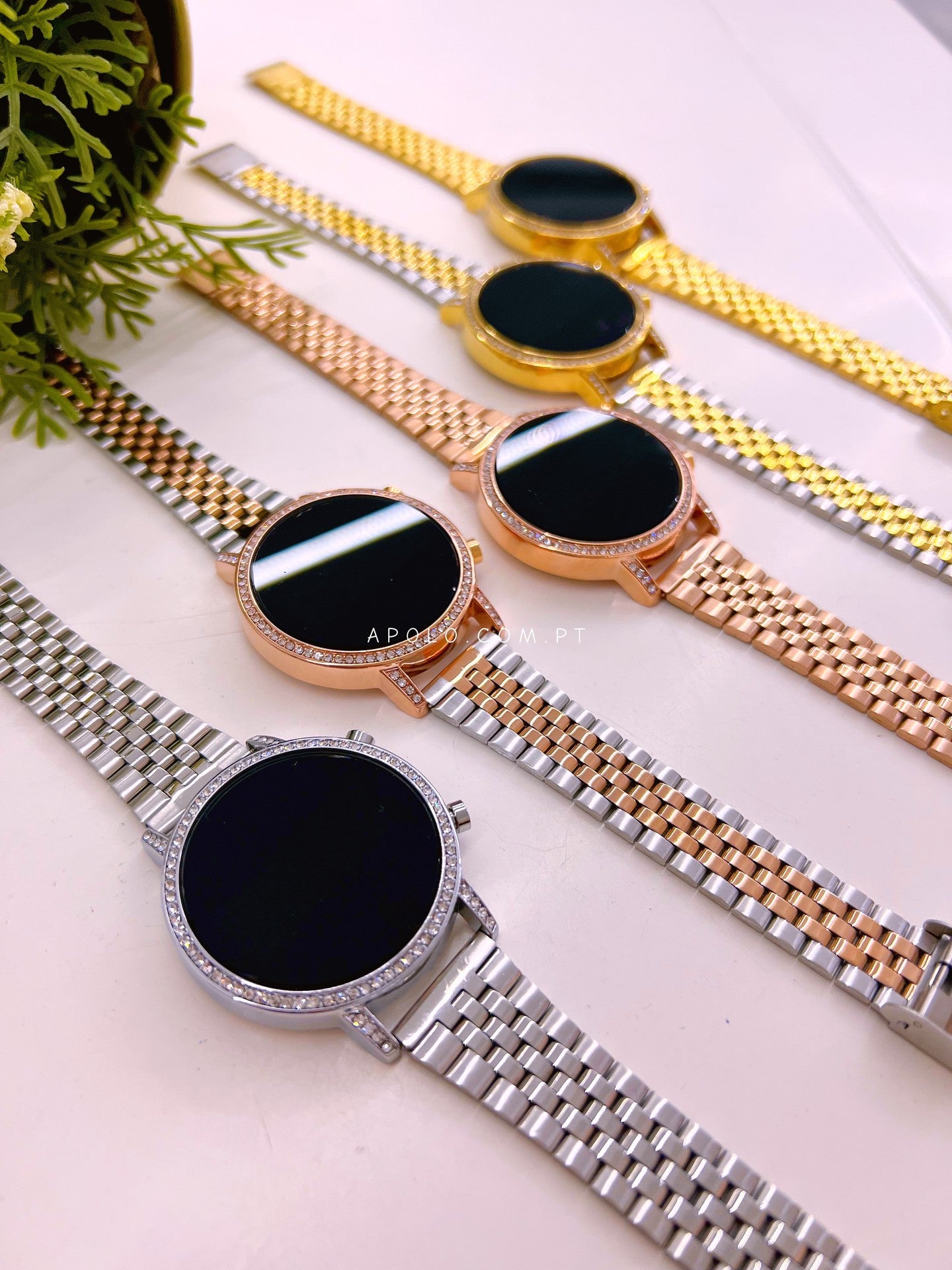 100% ajustável a qualquer pulso através de peça amovível na bracelete (não necessita de tirar elos e como tal dá para qualquer pulso), o mostrador mede aproximadamente 4cm.