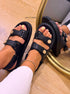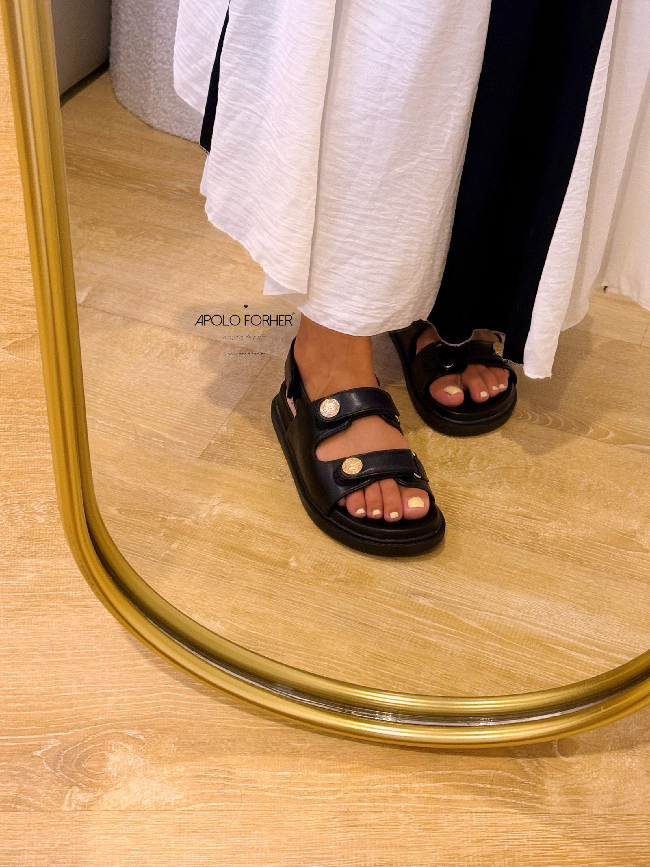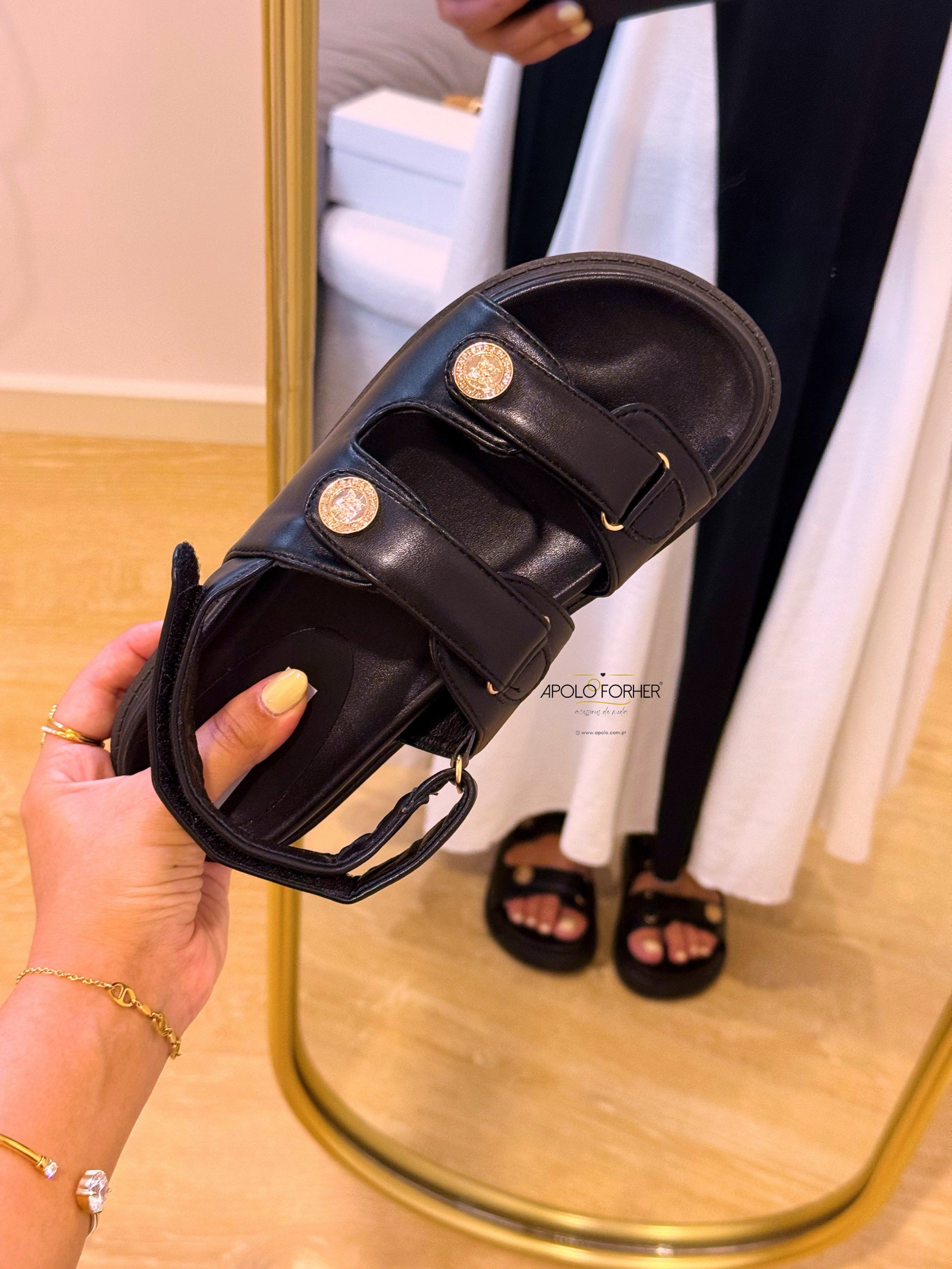 Sandália super tendência, com fivelas, perfeita para o dia a dia ou uma situação em que queiras andar gira e muito confortável.