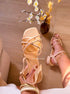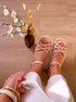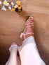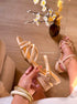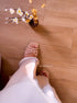 Sandália elegante com palmilha almofadada, em especial por baixo da linha do peito do pé, com um ligeiro salto de 3.2cm perfeito para o dia a dia ou evento em que queiras andar gira e muito confortável.