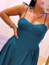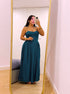 Vestido com preguinhas nas laterais | Azul Petróleo