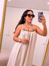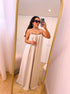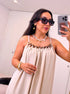 Vestido longo com corrente dourada e castanha | Bege