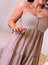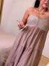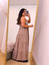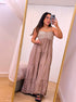 Vestido longo com efeito de cordinhas bordadas no peito | Bege escuro