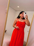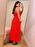 Vestido longo com elástico na cintura | Laranja