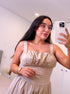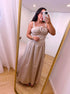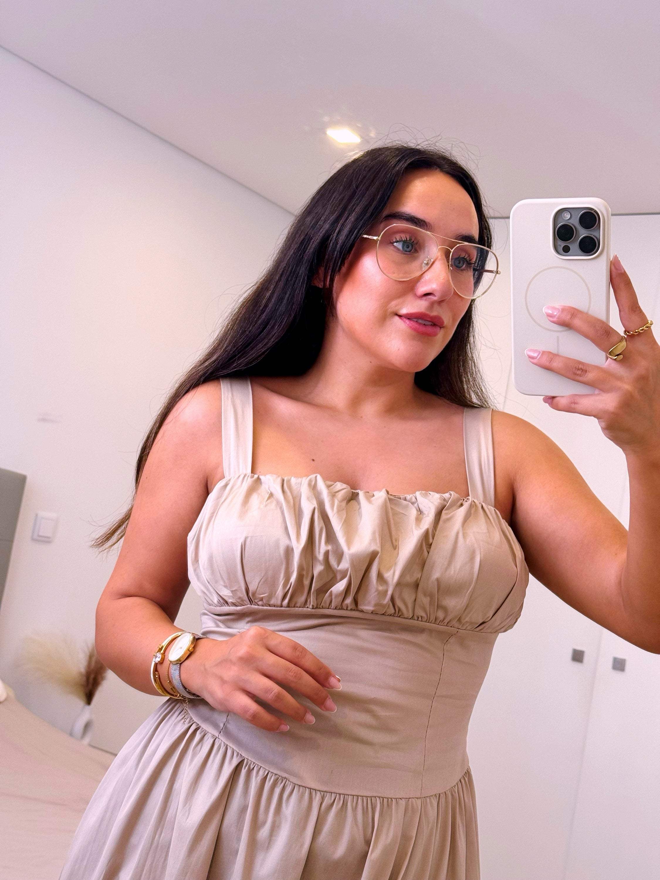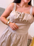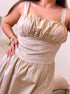 Vestido longo em algodão com cintura justa | Bege